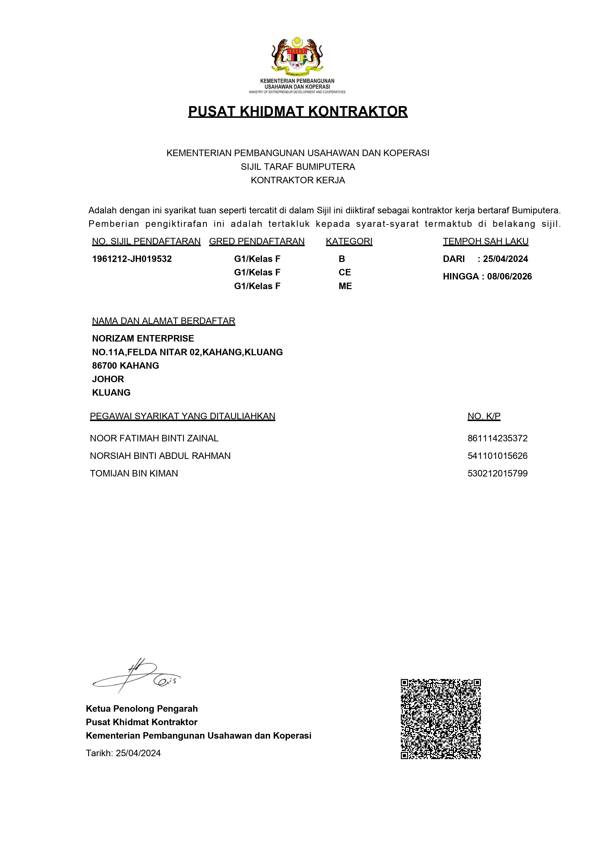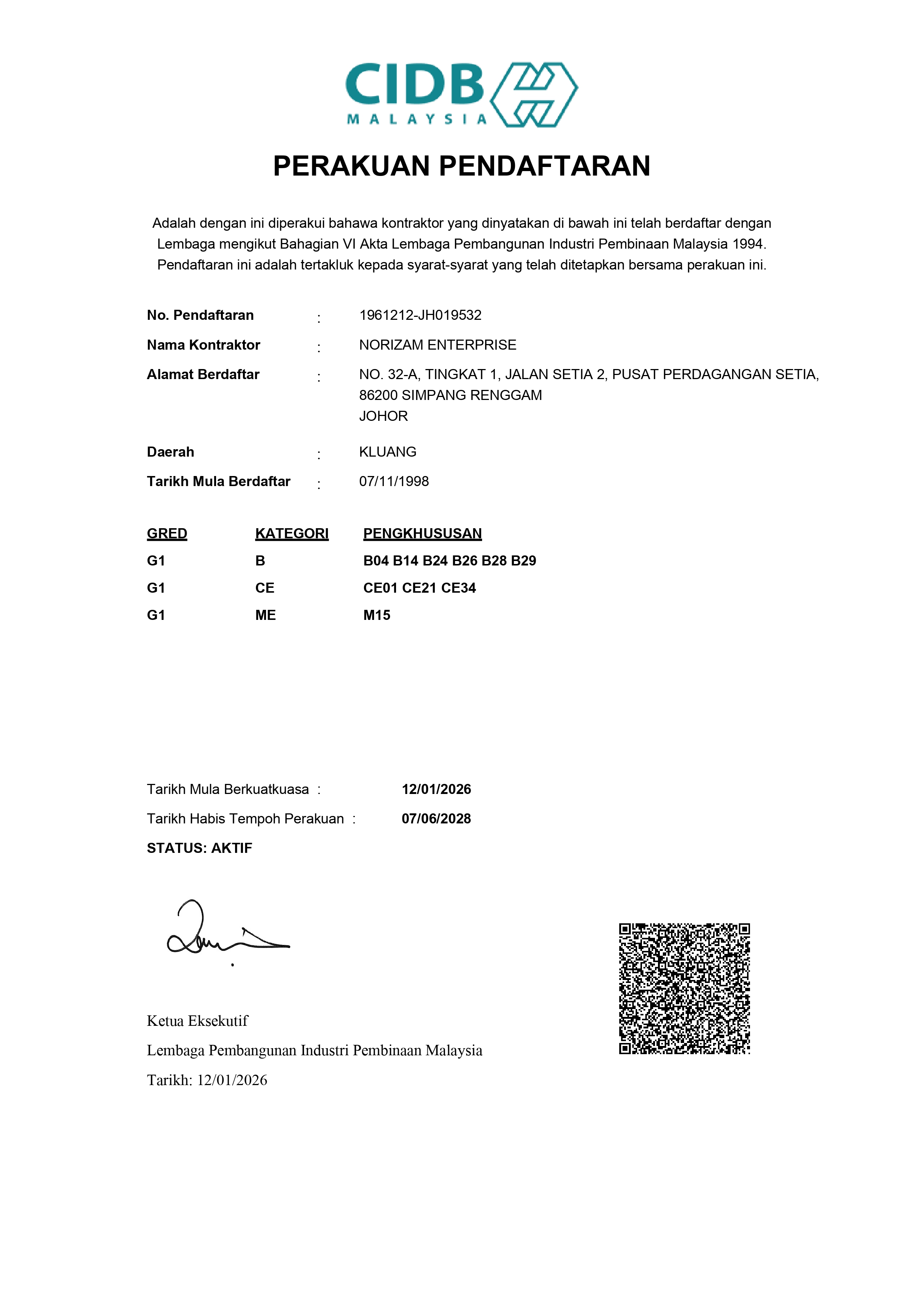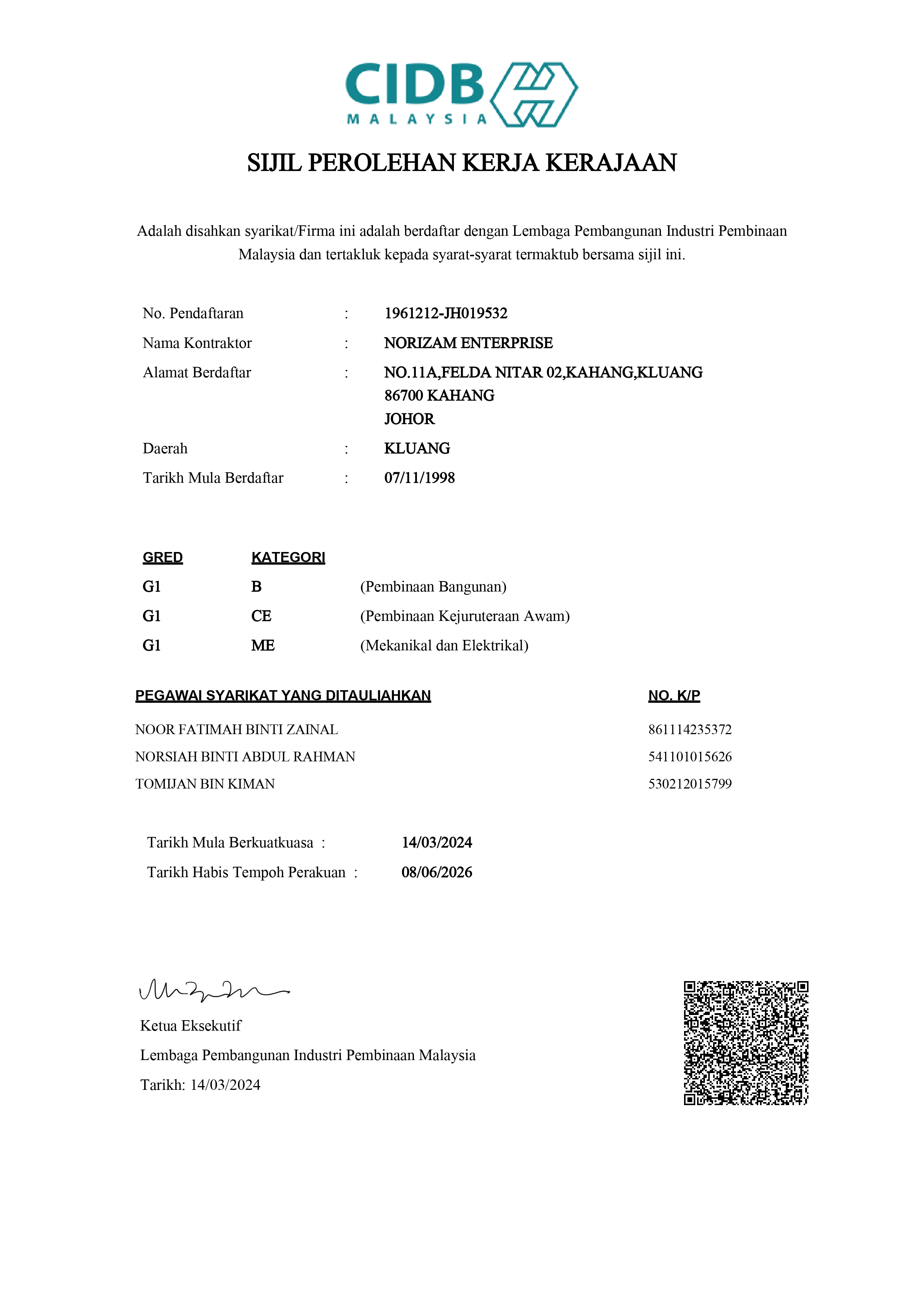 Verified CIDB registered contractor